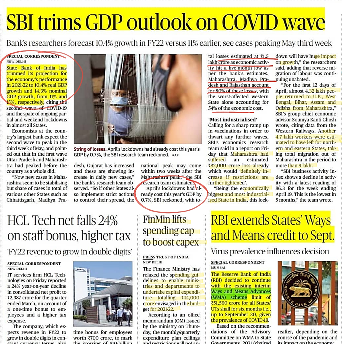 SBI sees 1.86 crore loss in Economy.