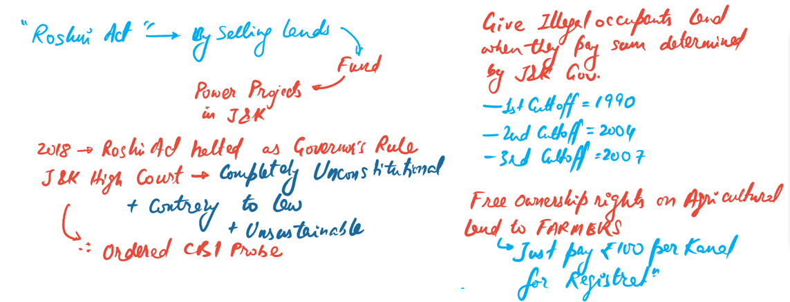 Jammu and Kashmir States Land (vesting of ownership to the occupants) Act, also known as Roshini Act, which has now been declared null and void.