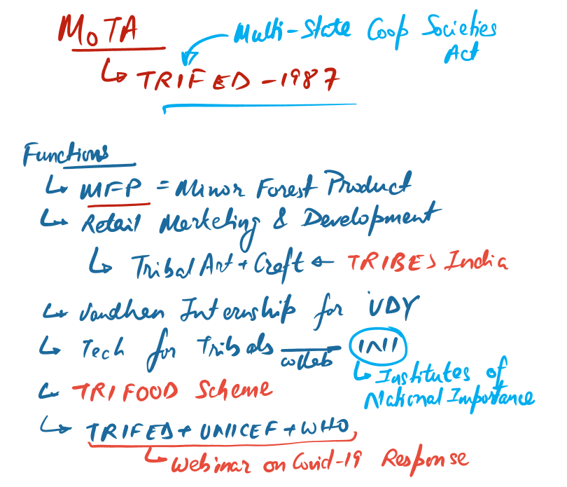 TRIFED= Tribal Cooperative Marketing Development Federation of India
