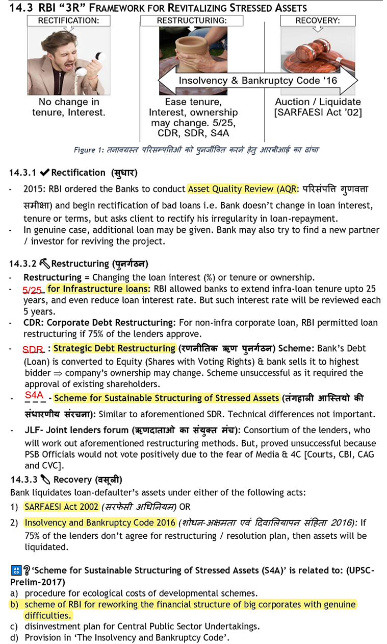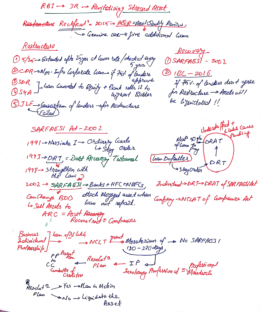 SDR–> whatever loan taken.. the loan documents are shown and converted into shares–> then sold as equity–> gather money to solve NPA.