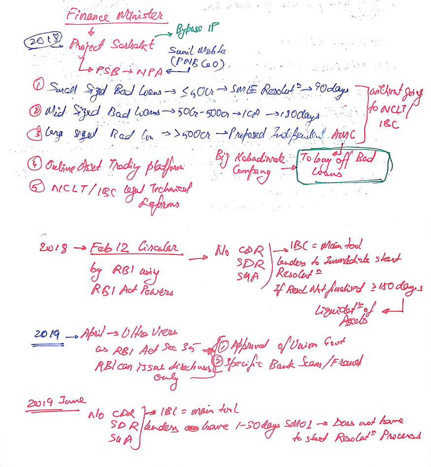 - It discontinued CDR, S4A, SDR, JLF etc. henceforth IBC to be main tool.