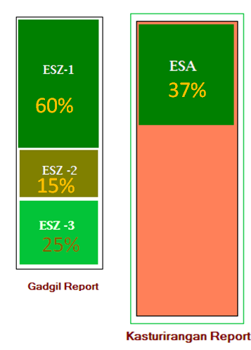 - Instead of total area of Western Ghats, only 37% (i.e. 60,000 sq. km.) of the total area be brought under ESA under Kasturirangan report.