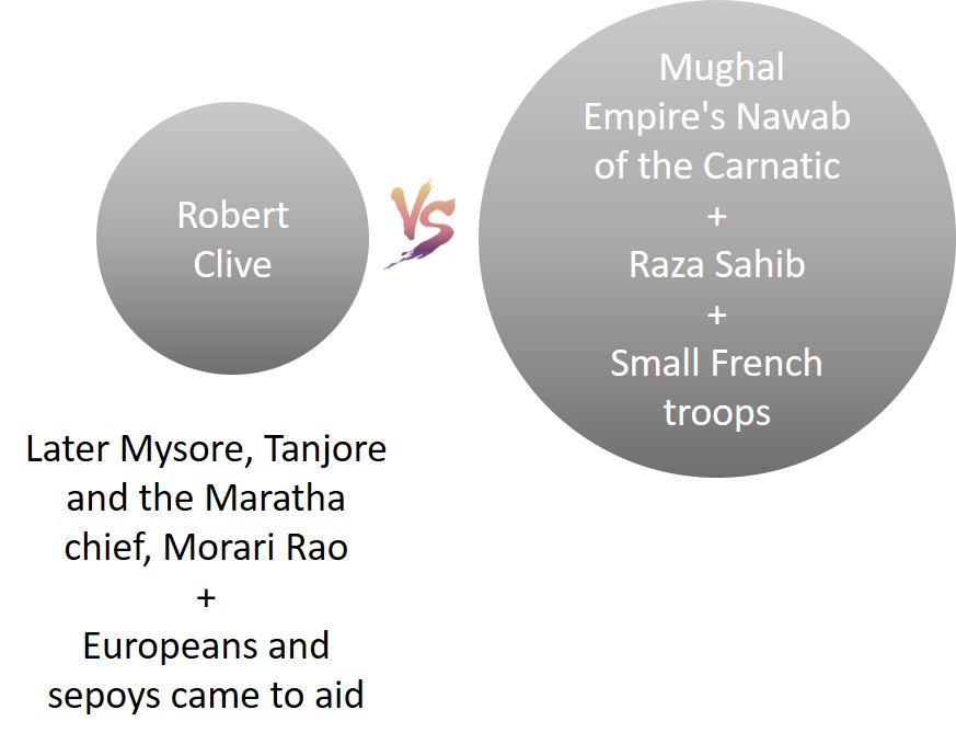 - Chanda Sahib besieged Trichinopoly Muhammad Ali (Son of Anwar-Ud-Din)
