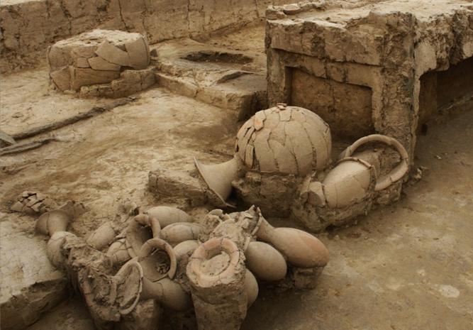 ASI has unearthed underground “sacred chambers”, decorated “legged coffins” as well as rice and dal in pots and animal bones buried with the bodies. Chariots, coffins, shields, swords and helmets had also been unearthed, pointing towards the existence of a warrior class in the area around 2,000 BCE.