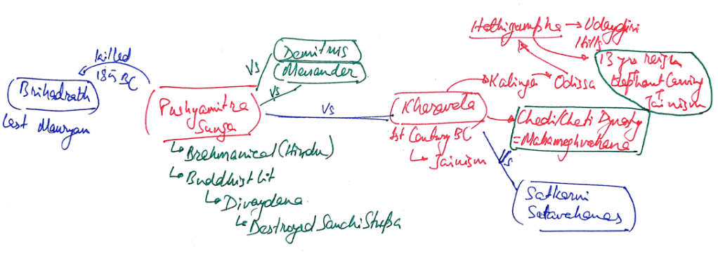 - Brihadratha – Greek invasion & overthrow by Pusyamitra