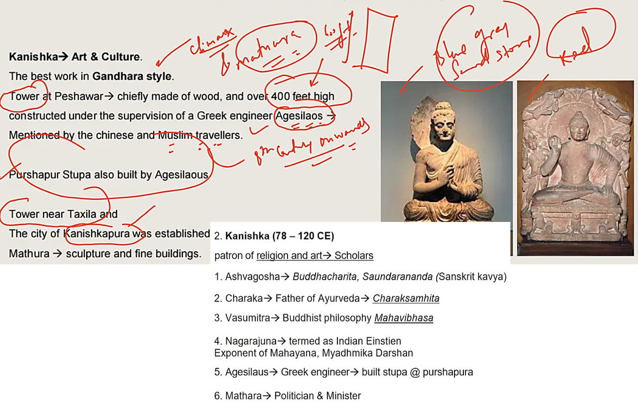Kalhana’s Rajatarangini → Kashmir was a part of the Mauryan empire Asoka built the city of Srinagar.
