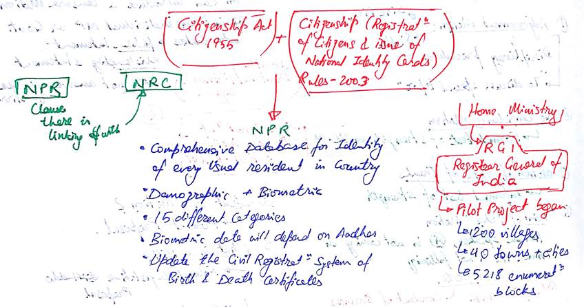 | NPR was not the NRC and the NPR did not have any connection with citizenship either. | 1.Annual report of the Ministry of Home Affairs of 2018-19, (Registrar and Census Commissioner of India: Chapter 15): The NPR is the first step towards the creation of the National Register of Indian Citizens under the provisions of the aforementioned statute 2.2003, the Act was amended and Section 14 A inserted : The Registrar General India has been designated as the National Registration Authority/Registrar General of Citizen Registration under the Act. 3.Same with Annual reports of 2017-18 and 2016-17. 4.The report of 2015-16 has a section referring to the 2003 amendment to the Citizenship Act. Interestingly, here it is also mentioned that “as a first step towards the creation of a National Register of Indian Citizens, the government has decided to create a NPR in the country”. 5.Separate section titled “Creation of the NRIC”, the report clearly states that the NPR is the first step towards the creation of the NRIC. “Once the NPR is completed, the next step is to create the NRIC by verifying the citizenship status of every usual resident in the NPR. z |