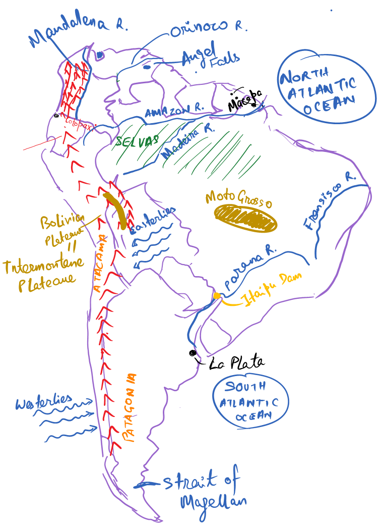 Westerlies ke west –> Patagonia Desert/ Plateaue = Piedmont