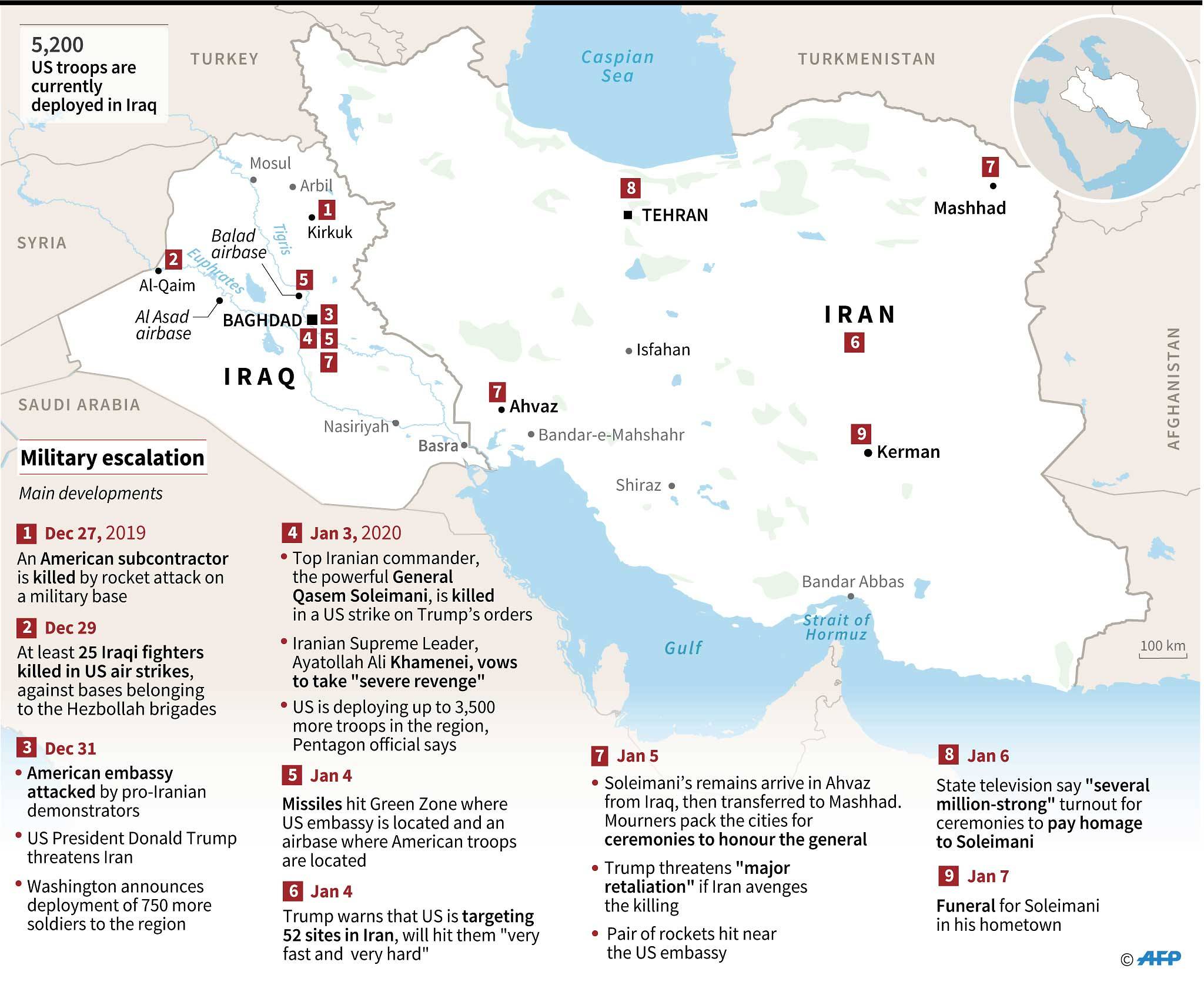 Killing of top Iranian military commander Qassem Soleimani and Iraqi militia leader Abu Mahdi al-Muhandis in a U.S. strike in Baghdad.